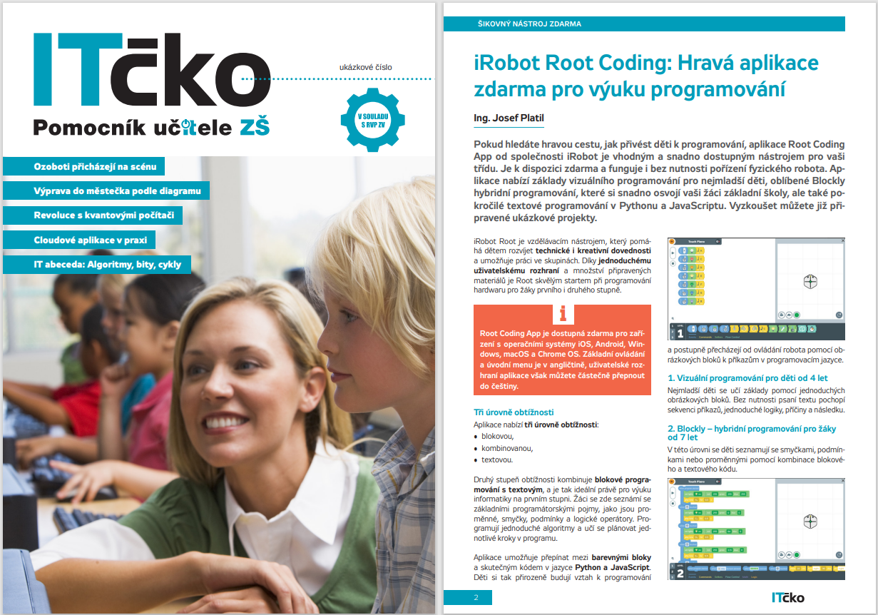 E-magazín ITčko je určen všem učitelům informatiky na základních školách a ředitelům škol, kteří chtějí mít přehled o moderních trendech ve výuce informatiky a hledají inspiraci pro své kolegy. Velmi přínosný bude zejména pro neaprobované učitele nové informatiky.