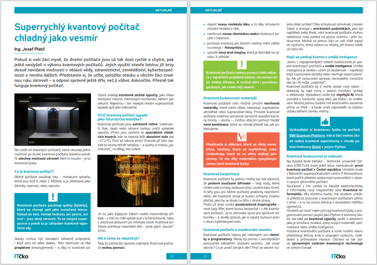 „ITčko mi jako učiteli informatiky opravdu pomáhá – každý měsíc mám po ruce nové nápady do hodin, které dávají smysl a žáky zaujmou. Navíc mám jistotu, že postupuji podle RVP ZV, a to bez složité přípravy.“